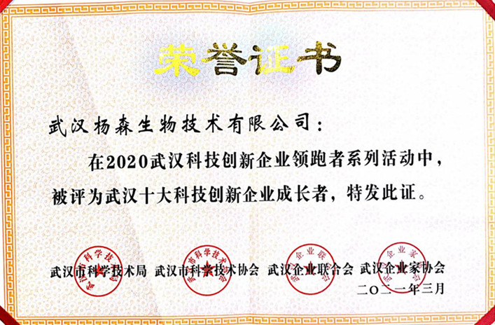 喜讯||武汉杨森荣获“2020武汉十大科技创新企业成长者”荣誉称号