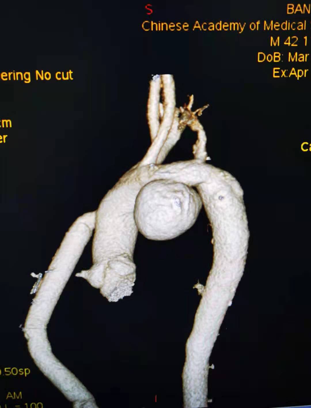 图1:患者术前的胸主动脉瘤CT图像